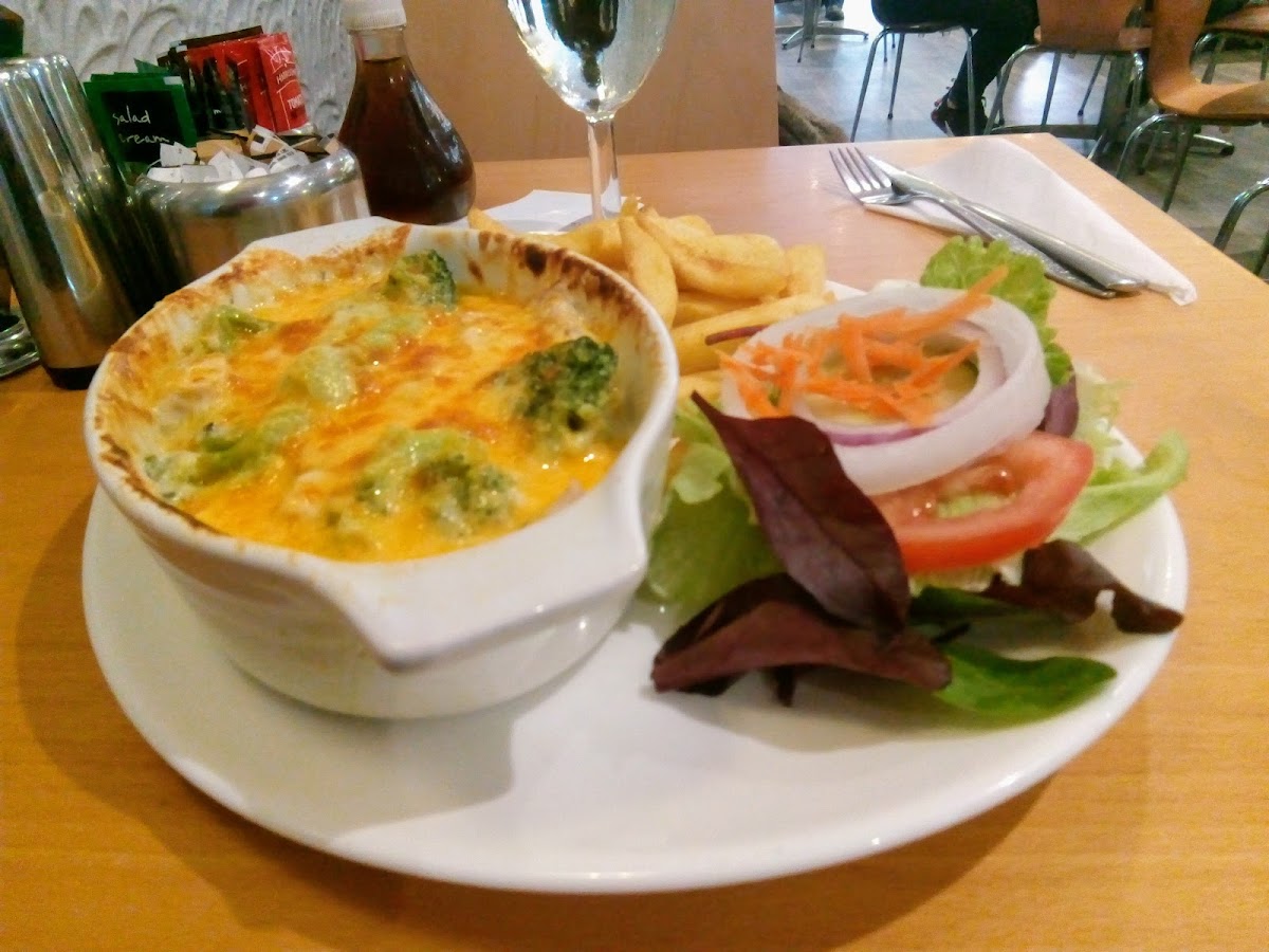 A highlight of the café’s menu is the Chicken and Broccoli Bake, topped with cheese and served with a side of chips and salad. This hearty dish is a crowd-pleaser and offers a perfect balance of flavors. For dessert, you can't go wrong with a slice of Apple Pie and Ice-Cream, a sweet and comforting treat to end your meal on a high note.