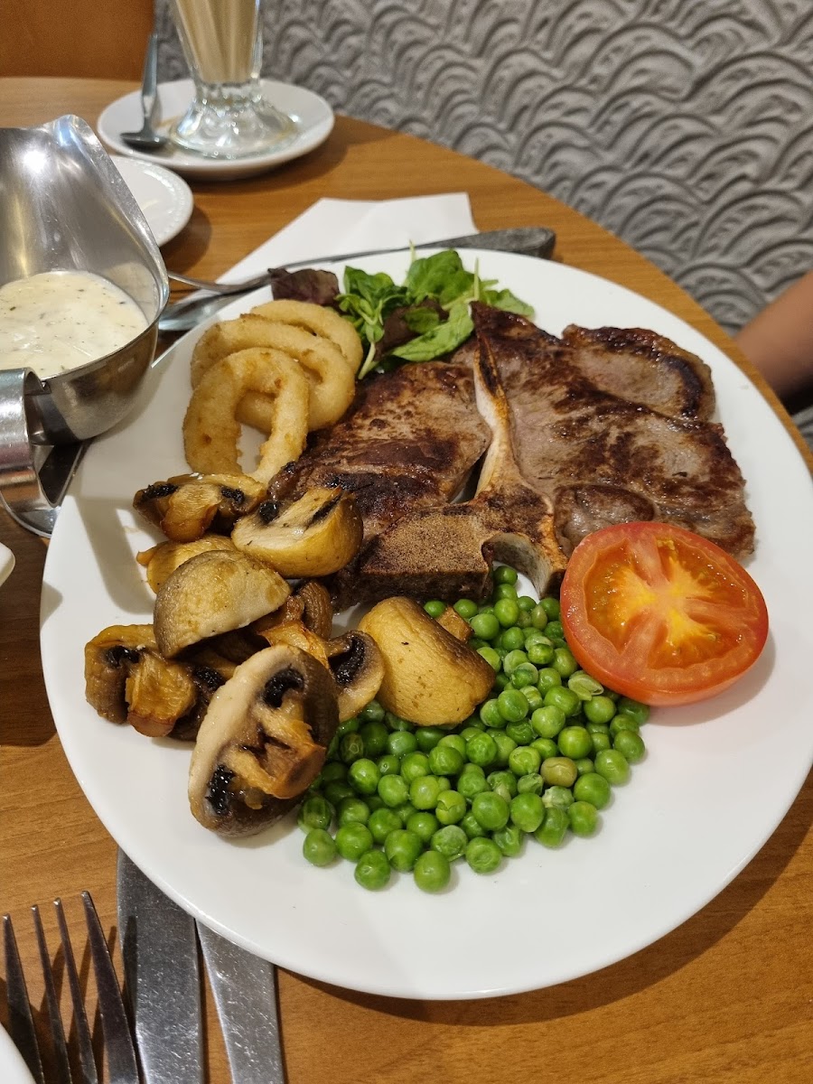 In the evening, the café transforms into a cozy spot for dinner. Whether you’re in the mood for a Ribeye Steak and Chips, cooked just right, or a comforting Hot Chicken and Stuffing Brown Baton, you’ll find plenty of satisfying dishes to enjoy. The café’s Ribeye Steak is particularly noteworthy, with the steak perfectly seared and complemented by crispy chips.